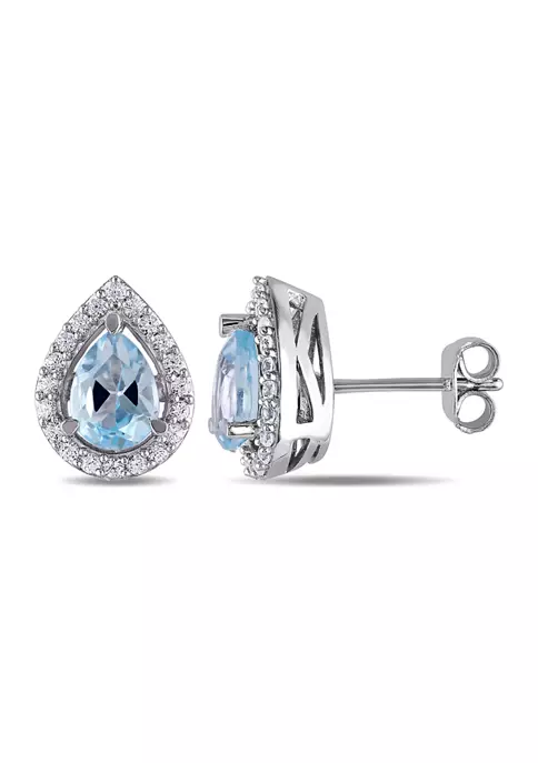 - Post back, Butterfly clasp, 2 sky blue topaz, 40 created white sapphire