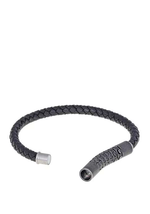 - Leather, stainless steel