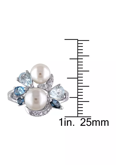 - 2 Pearls, 5 Blue Topaz, 7 White Sapphires