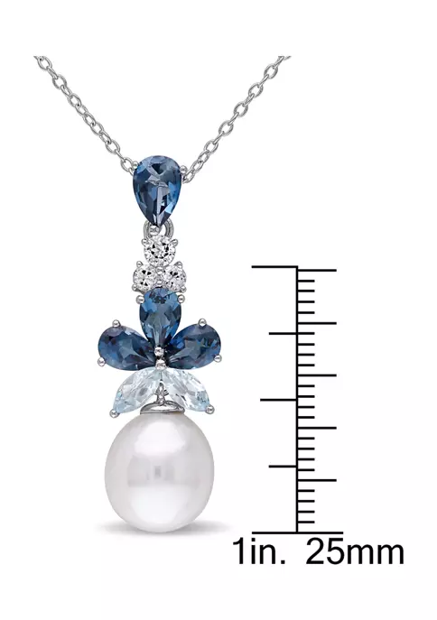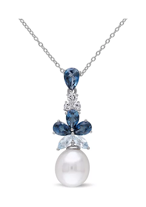 - 1 Pearl, 6 Blue Topaz, 3 White Topaz