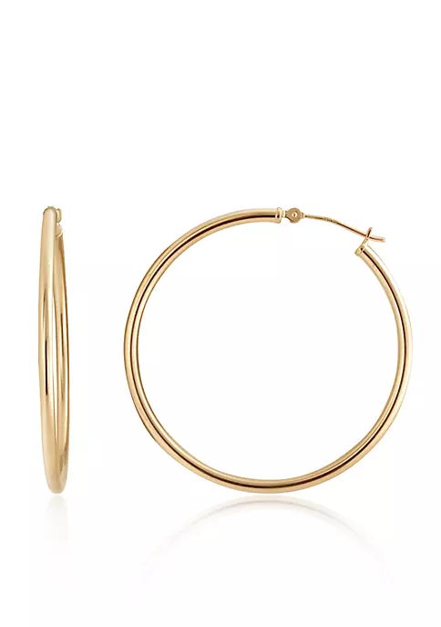 Flash Sale ⌛ 3 mm x 20 mm x 30 mm Square Tube Oval Hoop Earrings in 14K Gold by Belk & Co. ✔️