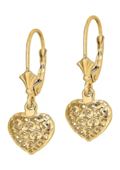 Cheap ๐ฅฐ 14K Yellow Gold Diamond Cut Mini Puffed Heart Lever Back Earrings by Belk & Co. โ
