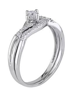 New โค๏ธ 3.1 ct. t.w. Created White Sapphire Bridal Ring Set in 10K White Gold by Belk & Co. โญ