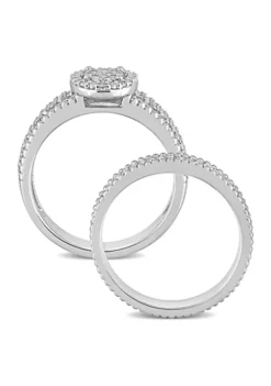 Buy ๐ 1/3 CT TDW Diamond Oval Shape Cluster Bridal Set in Sterling Silver by Belk & Co. โ