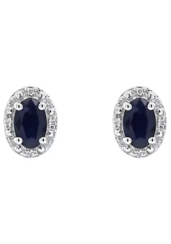 Deals ๐ Sterling Silver 6x4mm Oval Sapphire Diamond Accent Halo Stud Earrings by Belk & Co. โจ