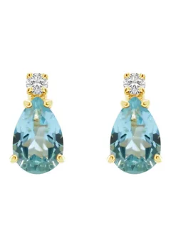 Flash Sale ๐ 14K Gold 6×4 Pear Shape Aquamarine Diamond Accent Earrings by Belk & Co. ๐
