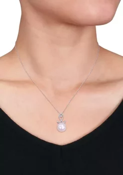 Hot Sale โ 12MM Tahaitian Pearl and White Topaz Drop Earrings, Sterling Silver by Belk & Co. ๐