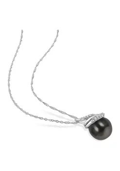 Hot Sale 🎁 10k White Gold Cultured Freshwater Pearl, Sapphire, and Diamond Pendant by Belk & Co. 😀