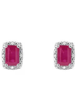 Outlet 💯 Sterling Silver 6x4mm Emerald Cut Ruby Diamond Accent Halo Stud Earrings by Belk & Co. 🤩