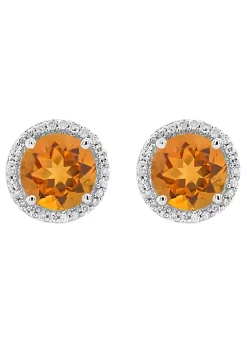 Top 10 😀 Sterling Silver 7mm Round Citrine 1/6 CTTW Diamond Halo Stud Earrings by Belk & Co. 🔔