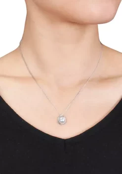 Wholesale 💯 10k White Gold Cultured Freshwater Pearl and Diamond Pendant by Belk & Co. 🔔