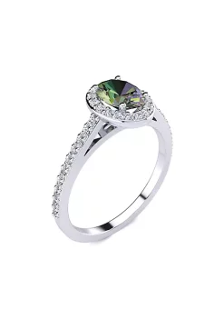 Coupon 🌟 1cttw Oval Shape Mystic Topaz and Halo Diamond Ring In Sterling Silver by Belk & Co. 🎁