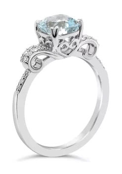 Deals โจ Sterling Silver 7mm Cushion Aquamarine 1/10 CTTW Diamond Ring by Belk & Co. ๐ฏ