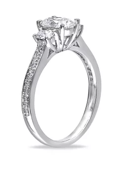 Deals 🔔 1.1 ct. t.w. Oval and Round Cut 3 Stone Engagement Ring in 14k White Gold by Belk & Co. 🔥
