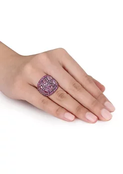 New 🔥 Sterling Silver 8mm Cushion Garnet and White Topaz Three-Stone Ring by Belk & Co. 👏
