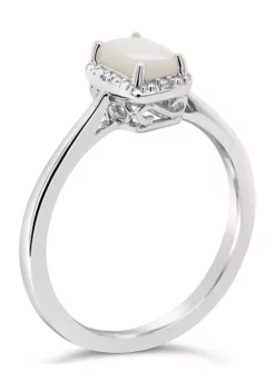 Outlet ๐ Sterling Silver 6x4mm Emerald Cut Opal Diamond Accent Halo Ring by Belk & Co. ๐