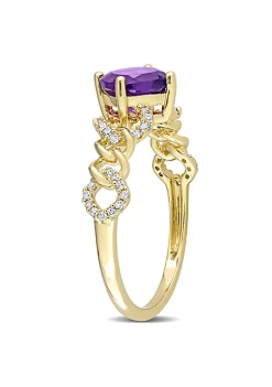 Promo ๐คฉ Cushion Amethyst and 1/7 CT TW Diamond Link Ring in 10k Yellow Gold by Belk & Co. ๐