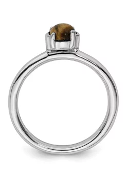 Top 10 ๐ Sterling Silver Stackable Expressions Tigers Eye Rhodium-plated Ring by Belk & Co. โจ