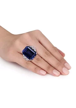 Wholesale 😍 Sterling Silver 6x4mm Emerald Cut Moonstone Diamond Accent Halo Ring by Belk & Co. 🎉