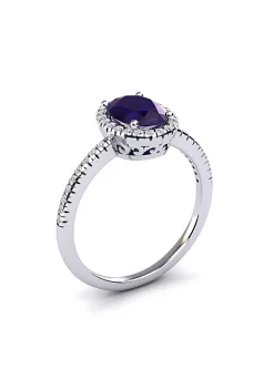 Best Pirce 😍 1 1/2cttw Oval Shape Amethyst and Halo Diamond Ring In Sterling Silver by Belk & Co. ✔️