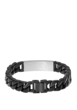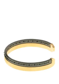 Best deal ๐ Damascus Steel and Leather Bracelet with Black and Gold Tone IP by Belk & Co. ๐