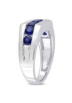 New ❤️ Lab Created Created Blue Sapphire Channel Set Men’s Ring in Sterling Silver by Belk & Co. 🥰