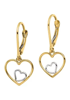 Cheap 👍 14K Yellow Gold with Rhodium Heart in Heart Lever Back Dangle Earrings by Belk & Co. ⌛