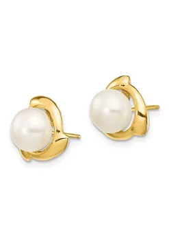 Cheap 👍 14K Yellow Gold 7-8mm White Button Freshwater Cultured Pearl Post Earrings by Belk & Co. ⭐