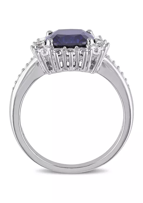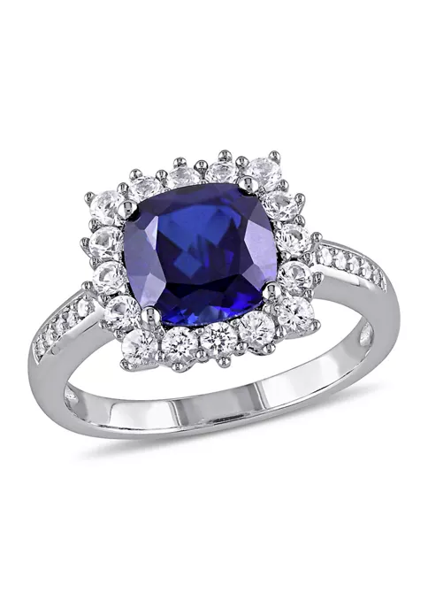 - 3.73 ct. t.g.w. created blue and white sapphire, 0.05 ct. t.w. diamond