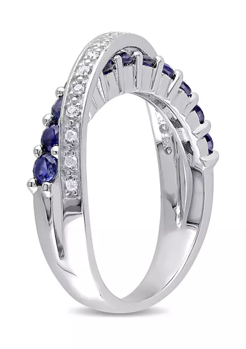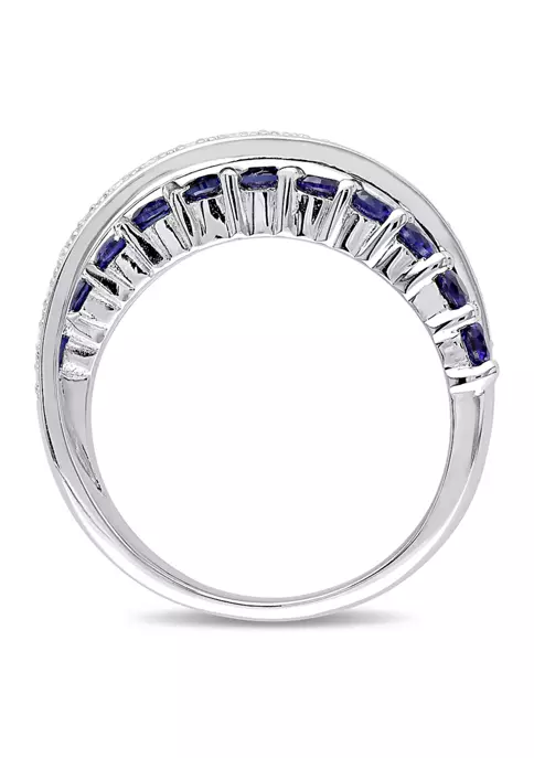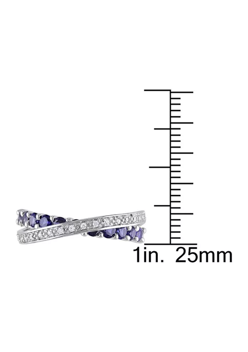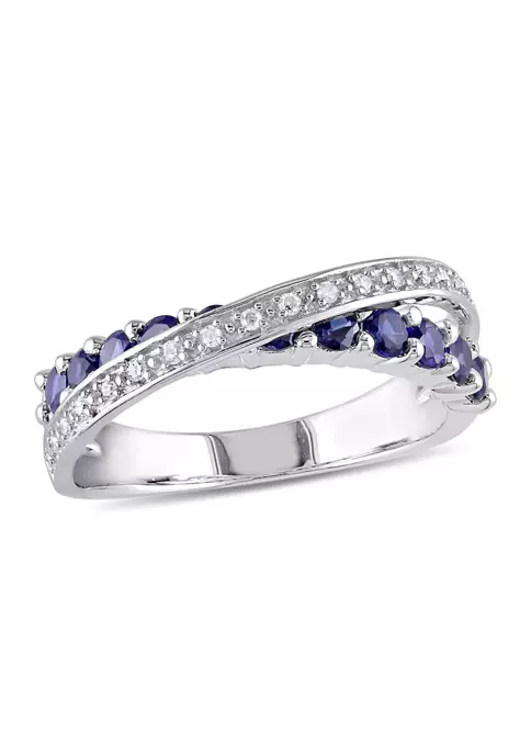 - 0.99 ct. t.g.w. created blue sapphire, 0.09 ct. t.w. diamond