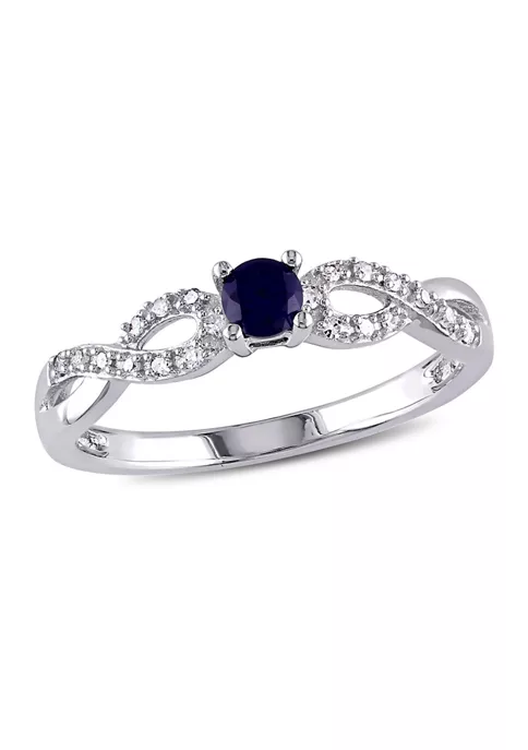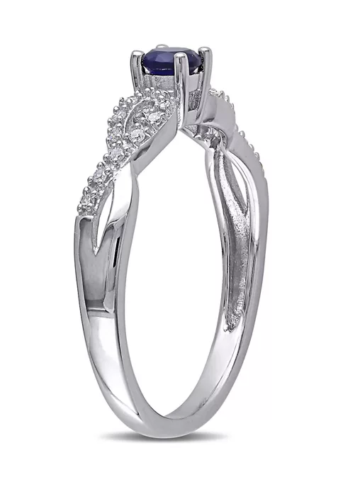 - 0.2 ct. t.g.w. created blue sapphire, 0.08 ct. t.w. diamond
