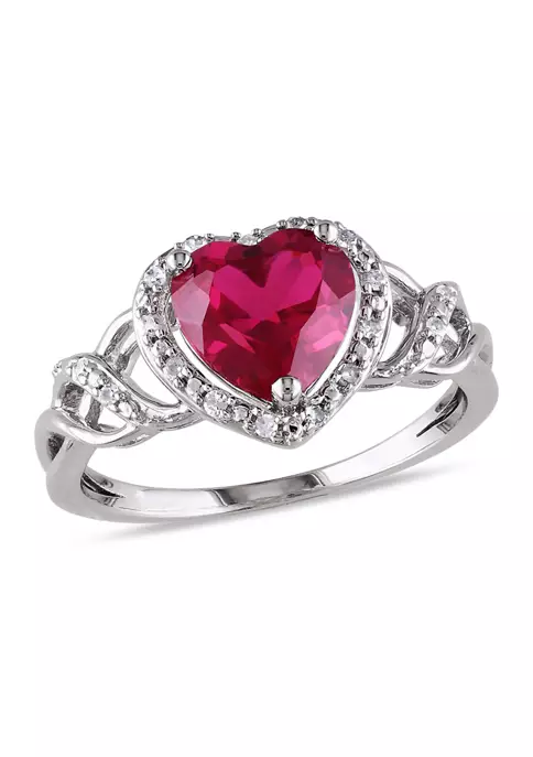 - 1.61 ct. t.g.w. created ruby, 0.085 ct. t.w. diamond