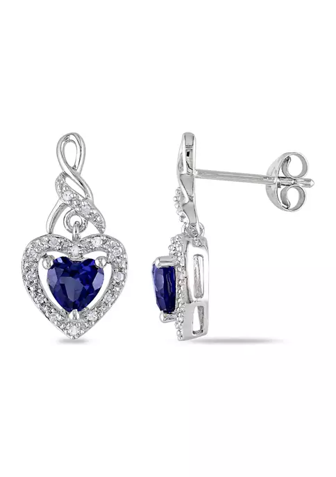- 1.14 ct. t.g.w. created blue sappphire, 0.126 ct. t.w. diamond
