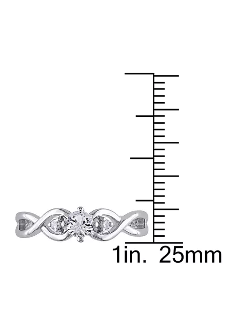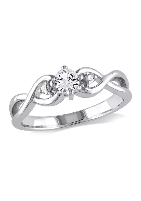 - 1/3 ct. t.g.w. created white sapphire, 0.04 ct. t.w. Diamond Accent