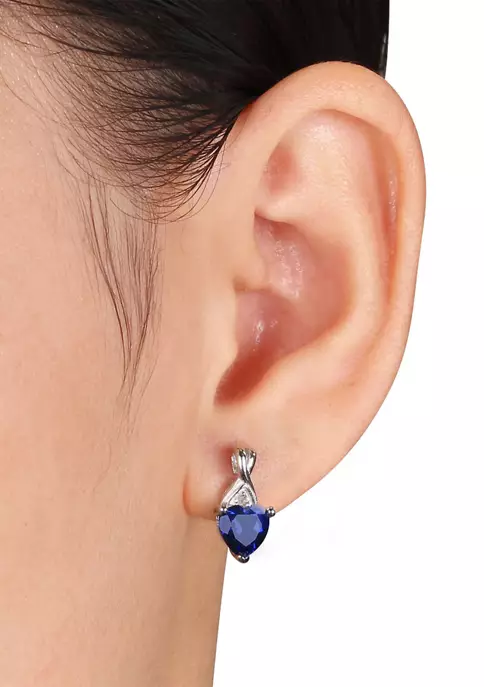 - Post back, Spring ring clasp, 3 created blue sapphire, 3 diamond