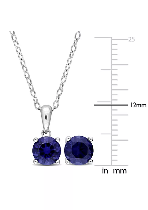 - Post back, Spring ring clasp, 3 created blue sapphire