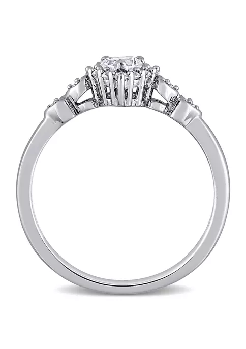 - 3/8 ct. t.g.w. created white sapphire, 0.01 ct. t.w. Diamond Accent