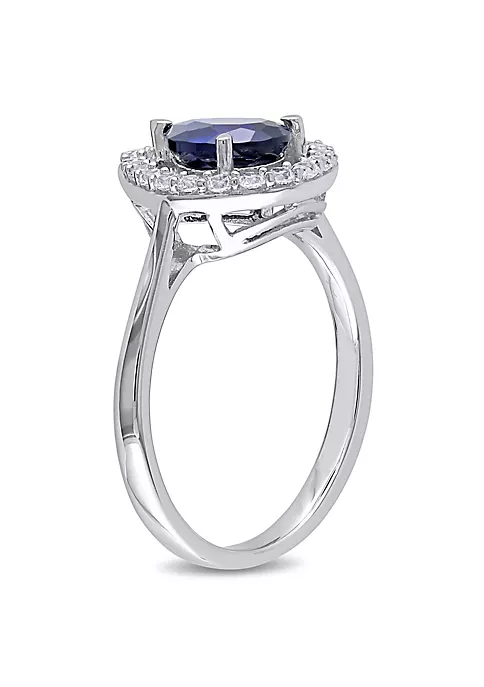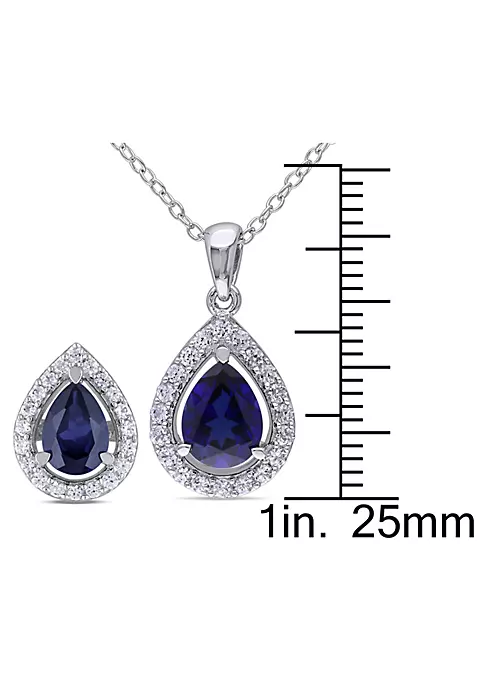 - Post back, Spring ring clasp, 4 Created Blue Sapphire, 80 Created White Sapphire