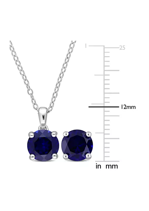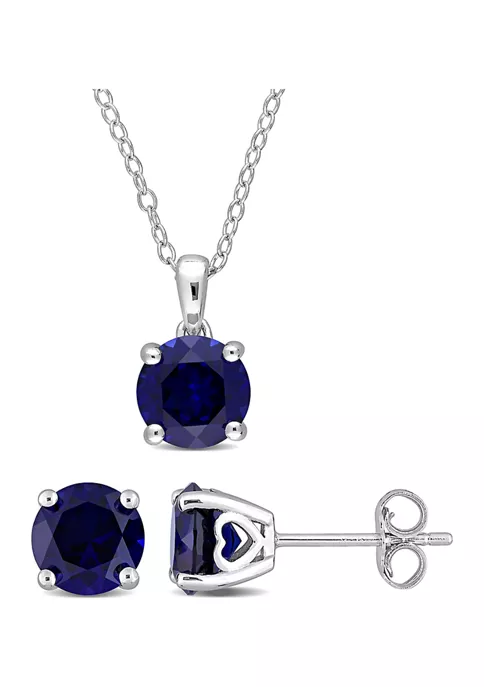 - Post back, Spring ring clasp, 3 created blue sapphire