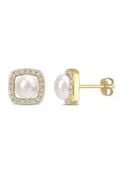 - Post back, Butterfly clasp, 2 pearl, 38 created white sapphire