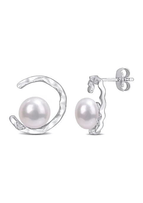 - Post back, Butterfly clasp, 2 pearl, 2 created white sapphire