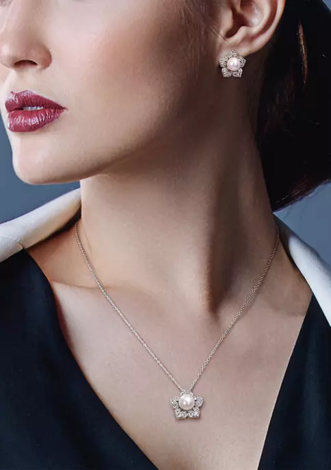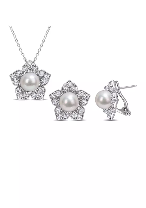 - Omega clip earring, Spring ring clasp, 3 pearl, 45 created white sapphire