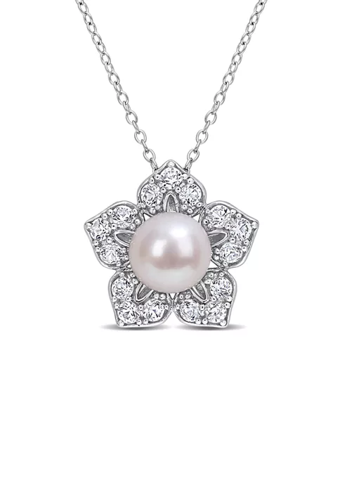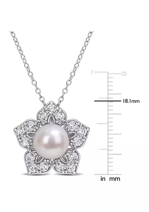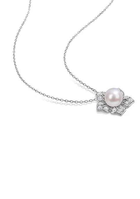 - Spring ring clasp, 1 pearl, 15 created white sapphire
