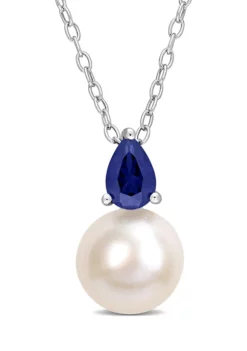 - Spring ring clasp, 1 pearl, 1 created blue sapphire