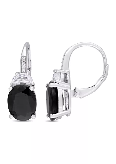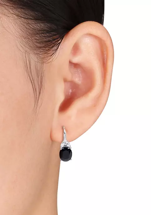 - Leverback, Jewelry clasp, 2 black sapphire, 2 created white sapphire, 8 Diamond