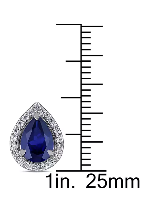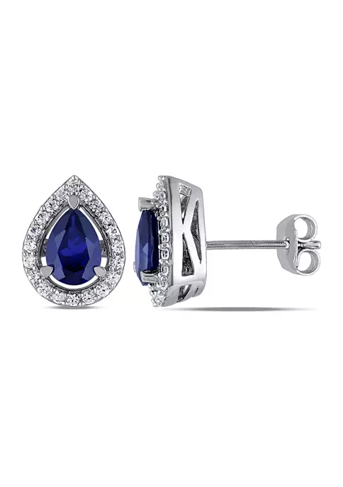 - Post back, Butterfly clasp, 2 Created Blue Sapphire, 40 Created White Sapphire