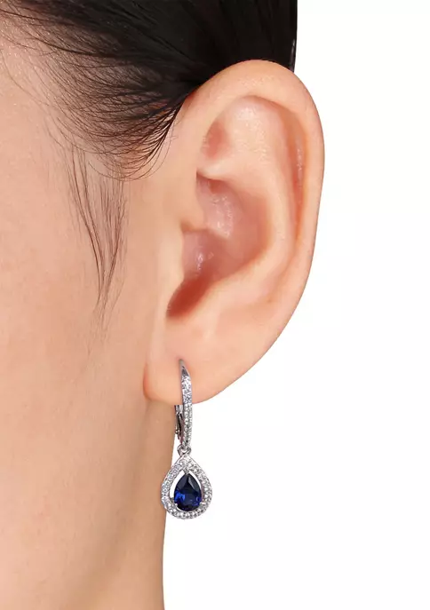 - Leverback, Jewelry clasp, 2 Created Blue Sapphire, 60 Created White Sapphire