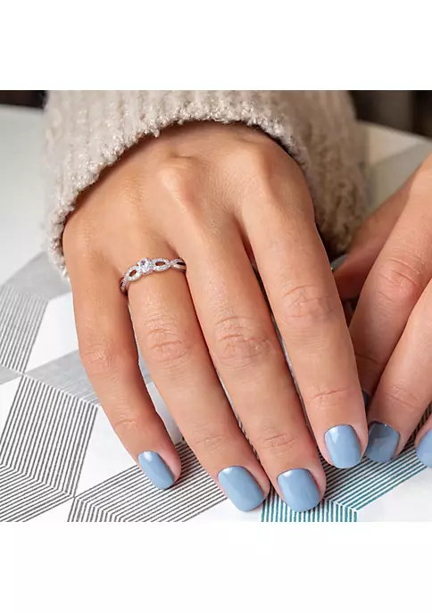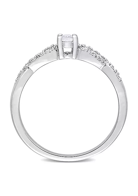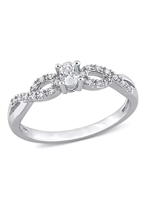 - 1/4 ct. t.g.w. created white sapphire, 0.08 ct. t.w. diamond