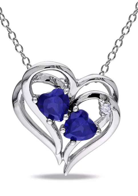 - Spring ring clasp, 2 created blue sapphire, 1 diamond