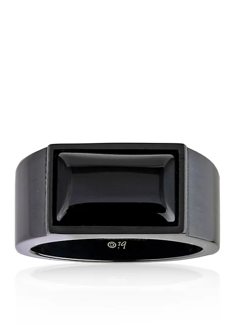 Best Sale ๐Ÿ˜‰ Men’s Stainless Steel and Black Agate Ring by Belk & Co. โŒ›